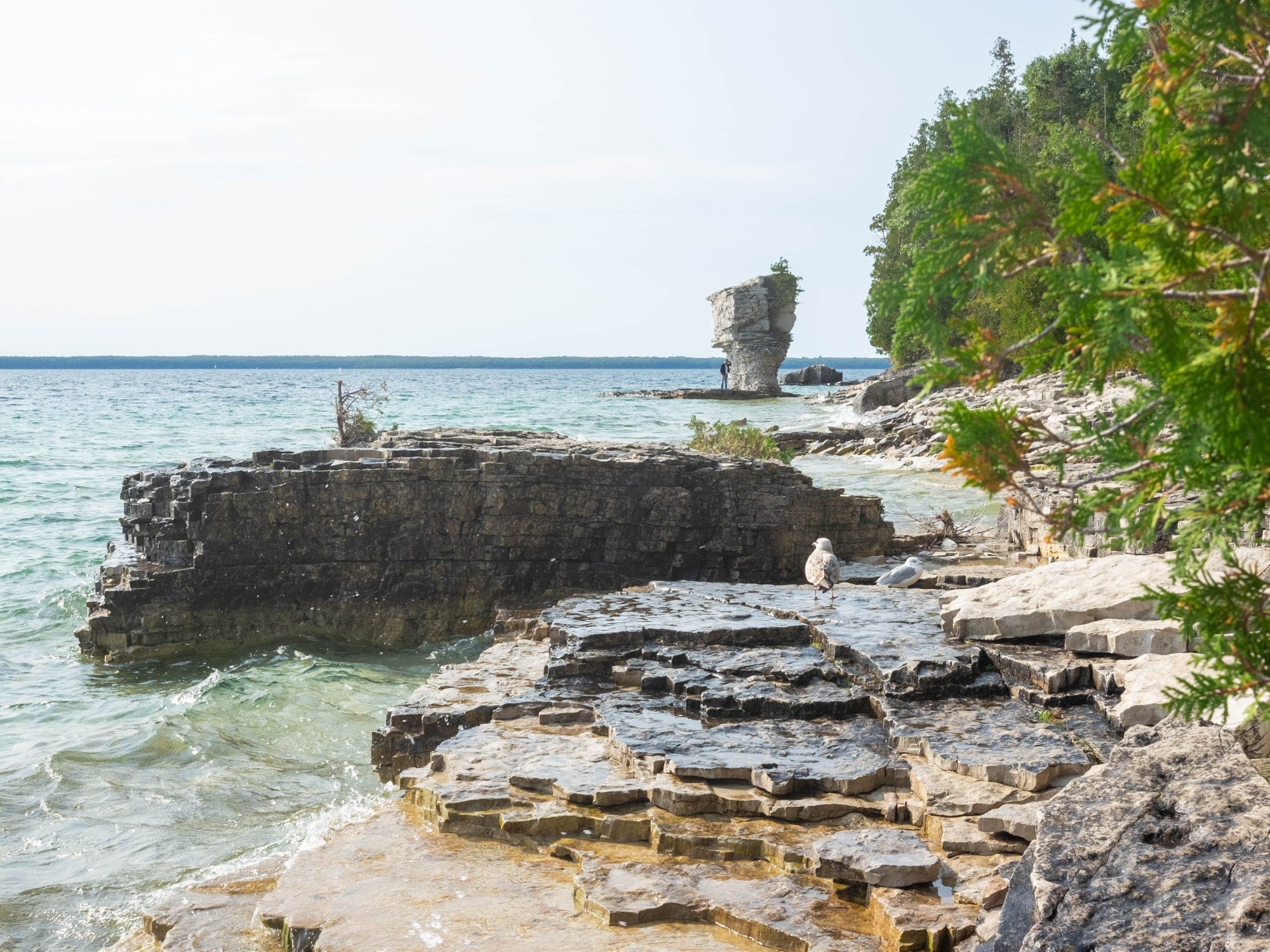 Flowerpot Island is a short ferry ride away from the charming, harbour village of Tobermory. On our way over, we past the pristine Big Tub lighthouse and saw an incredible shipwreck from the boat’s glass bottom.